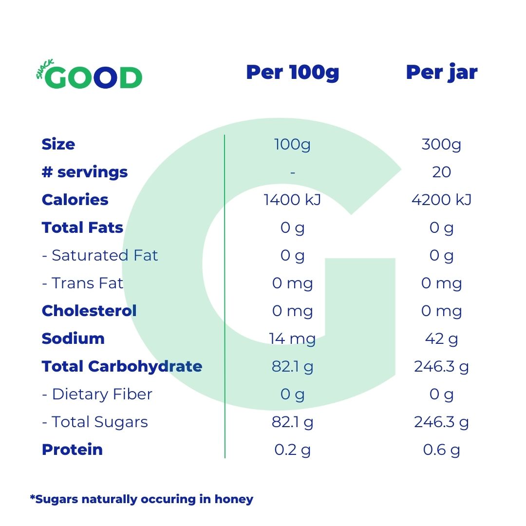 Vanilla Bean honey combines vanilla bean, with the unique flavours of Western Australian wildflowers. From the blossoms to our bees, to your pantry. This gentle, ruby coloured honey offers a full-bodied sweetness with the smooth taste of vanilla.